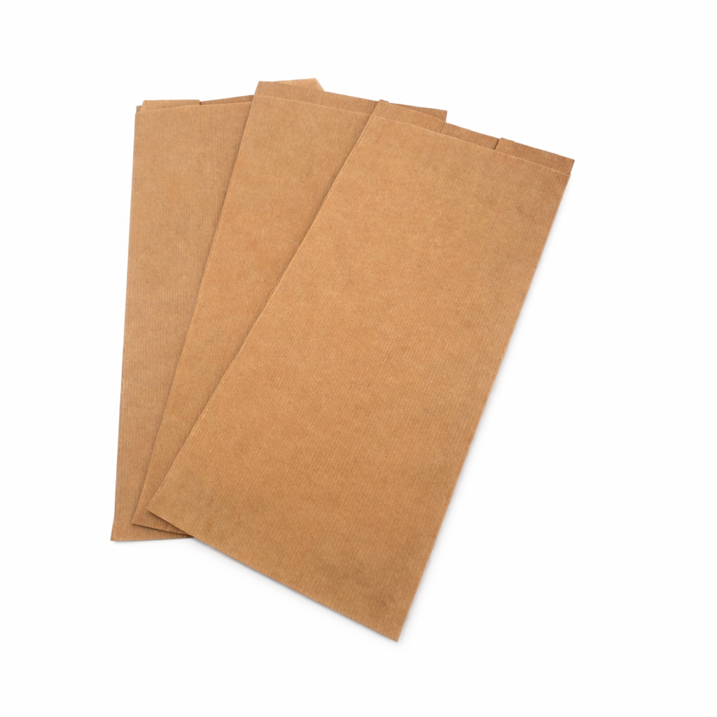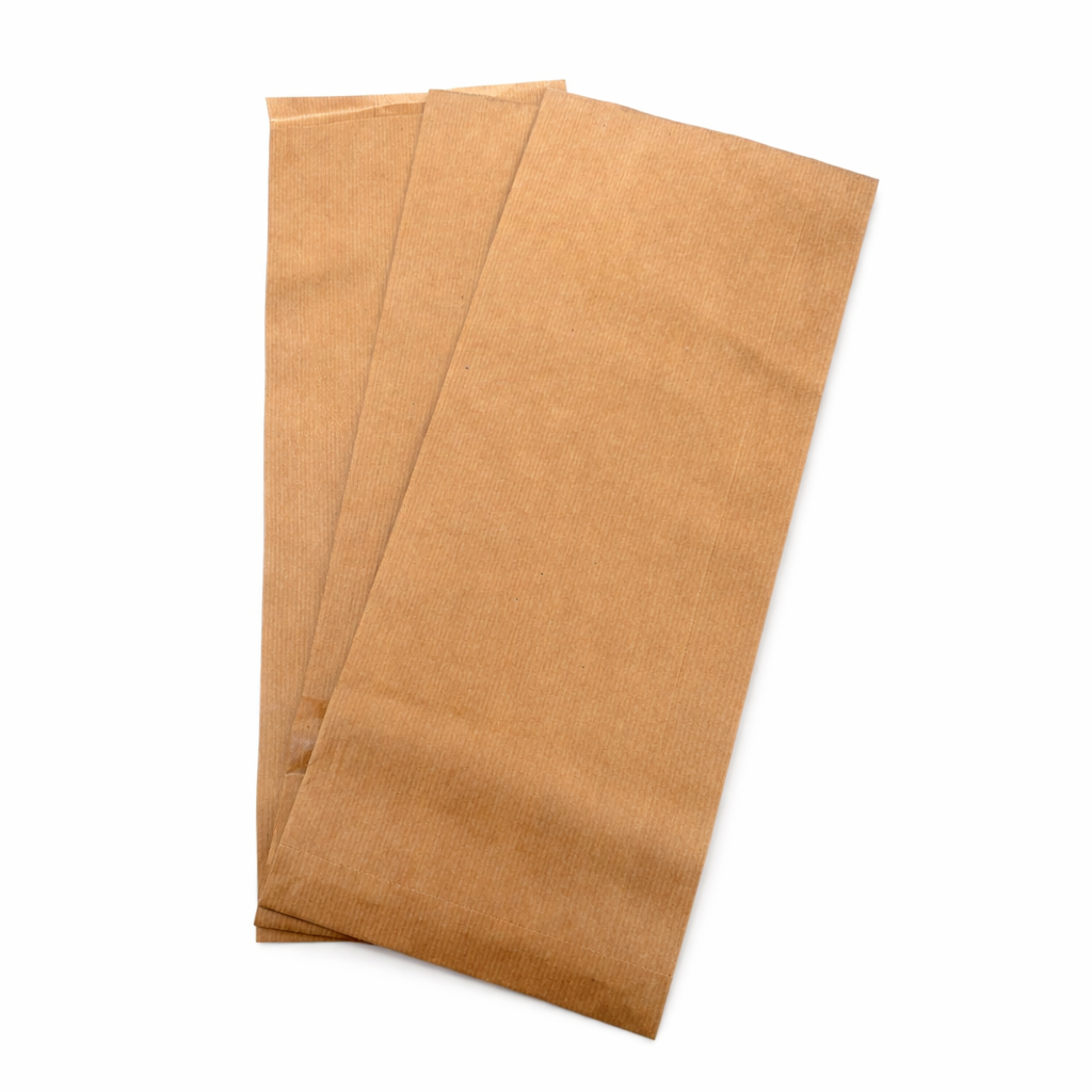Sacchetti di carta avana millerighe, per asporto merci alimentari e non, confezioni da 10 kg, idoneo al contatto alimentare.