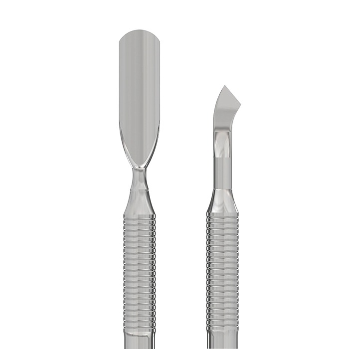- Pusher Largo Arrotondato: Ideale per sollevare e spingere indietro la cuticola, adattandosi a diverse forme e dimensioni di unghie. La sua leggera curvatura garantisce un’aderenza perfetta alla lamina ungueale.